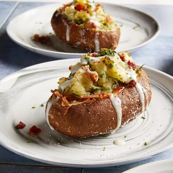 These Whole30 Loaded Baked Potatoes bring all the cozy vibes—without stealing focus from the main event. Fluffy russet potatoes are whipped with ghee, ranch dressing, fresh herbs, and garlic, then baked again until lightly golden. Finished with crispy bacon and a shower of chives, they’re creamy on the inside, crisp on top, and completely irresistible. Comfort food, dressed up just enough for date night. |